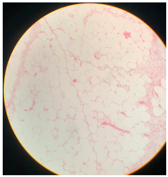 Lipomas são os tumores benignos mais comuns do tecido adiposo e representam a neoplasia mesenquimal mais frequente em tecidos moles. Em geral, manifestam-se como massas subcutâneas móveis, bem delimitadas, de consistência macia e indolores, surgindo sobretudo em extremidades proximais e tronco de adultos entre a quinta e sexta décadas de vida. Histologicamente, o lipoma típico é composto por adipócitos maduros morfologicamente indistinguíveis do tecido gorduroso normal, usualmente circundados por uma delgada cápsula fibrosa. Variantes específicas incluem fibrolipoma, lipoma de células fusiformes, angiolipoma, mielolipoma, dentre outras, diferenciadas por características morfológicas e/ou genéticas peculiares (Kumar; Abbas; Aster, 2018). No exame macroscópico, lipomas apresentam superfície de corte amarelo-vivo, lobulada, reproduzindo o aspecto da gordura subcutânea . Esses achados clássicos estavam presentes no caso descrito – a peça cirúrgica exibia material amarelado e macio preenchendo a luz e espessando difusamente a parede apendicular, em concordância com a natureza adiposa da lesão.