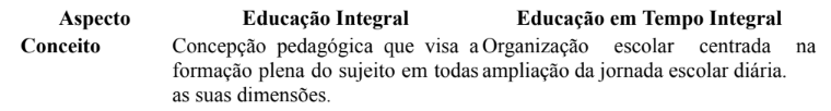 Quadro 1: Educação Integral × Educação em Tempo Integral