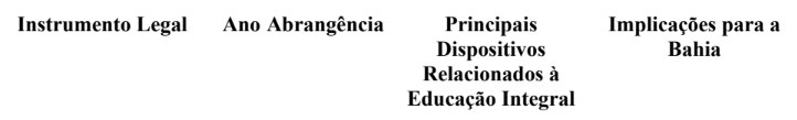 Tabela 1: Marcos Legais da Educação em tempo Integral