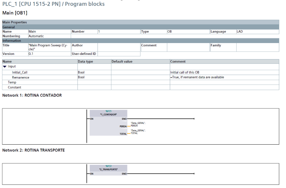 O OB1 é o bloco executado ciclicamente pelo CLP e contém as chamadas das rotinas principais:
