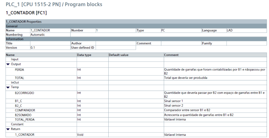 Figura 3 – Declaração de variáveis do bloco FC1 (1_CONTADOR)