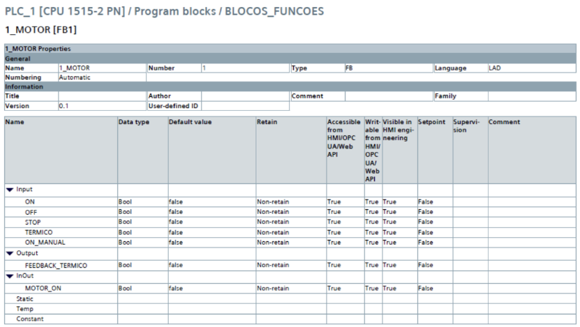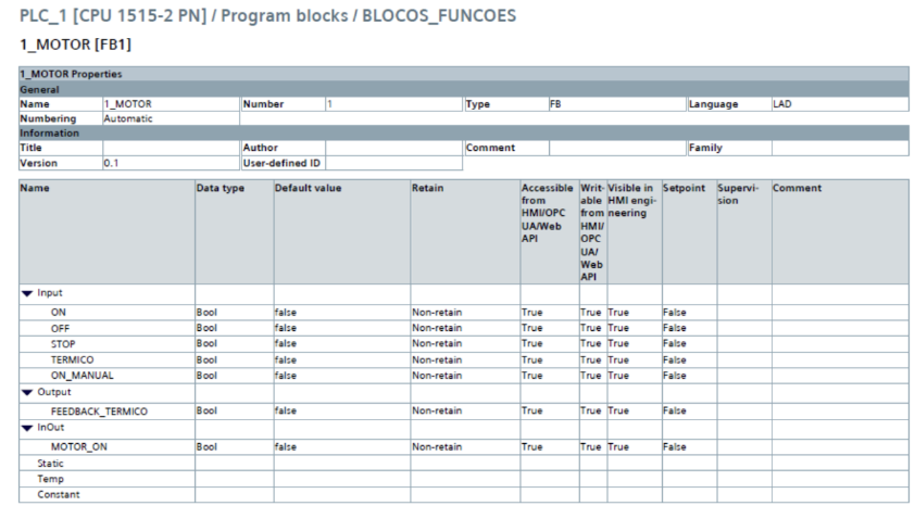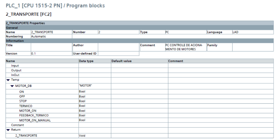 Figura 7 – Declaração de variáveis do bloco FC2 (2_MOTOR)