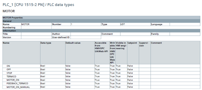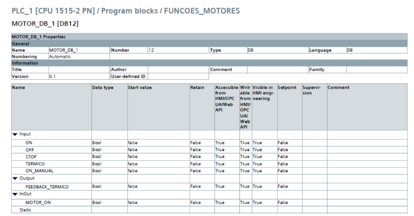 Para padronização, foi criado um tipo de dados (UDT) específico para o motor. Essa estrutura facilita: