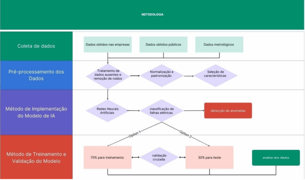 Para o desenvolvimento deste estudo, serão empregadas abordagens quantitativas e experimentais, com a implementação e avaliação de algoritmos de inteligência artificial (IA) para detecção e monitoramento de falhas elétricas.