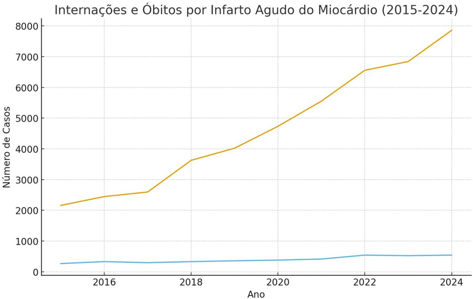 As doenças cardiovasculares permanecem como uma das principais causas de morbimortalidade no mundo e no Brasil, com destaque para o infarto agudo do miocárdio (IAM) e o acidente vascular cerebral (AVC), os quais constituem importantes emergências tempo dependentes. No contexto brasileiro, estudos recentes apontam que, embora haja avanços em políticas públicas e expansão das redes de atenção, a carga desses agravos permanece elevada, com variações regionais significativas quanto à incidência, mortalidade e acesso ao cuidado especializado (BRASIL et al., 2024; COSTA et al., 2023; DA SILVA et al., 2024; DOS SANTOS et al., 2025).