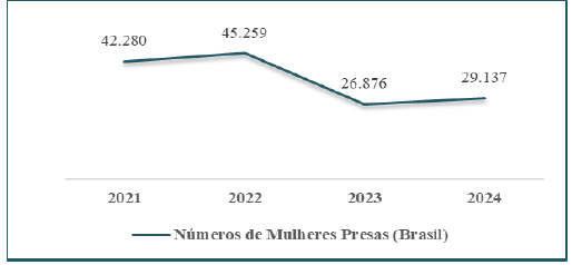 Gráfico 1 Número de Mulheres presas no Brasil (2021 – 2024)