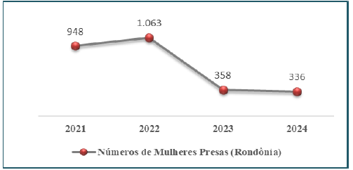 Gráfico 2 – Número de Mulheres presas em Rondônia (2021 – 2024)