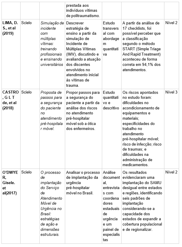 SOUSA B.; TELES J.; OLIVEIRA E. Perfil, dificuldades e particularidades no trabalho de profissionais dos serviços de atendimento pré-hospitalar móvel: revisão integrativa. Enfermería Actual de Costa Rica. Edición Semestral Nº. 38, 2020 http://dx.doi.org/10.15517/revenf.v0i38.36082 – Acesso em: 04 set. 2025.
