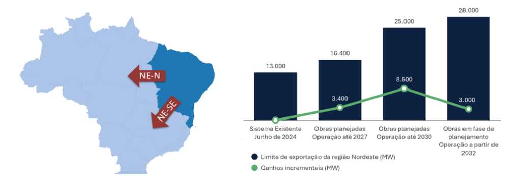 A Figura 2 ilustra a quantificação da expectativa de expansão da capacidade de exportação da malha de transmissão de energia elétrica da região nordeste, conforme explicado anteriormente com o reforço da malha.