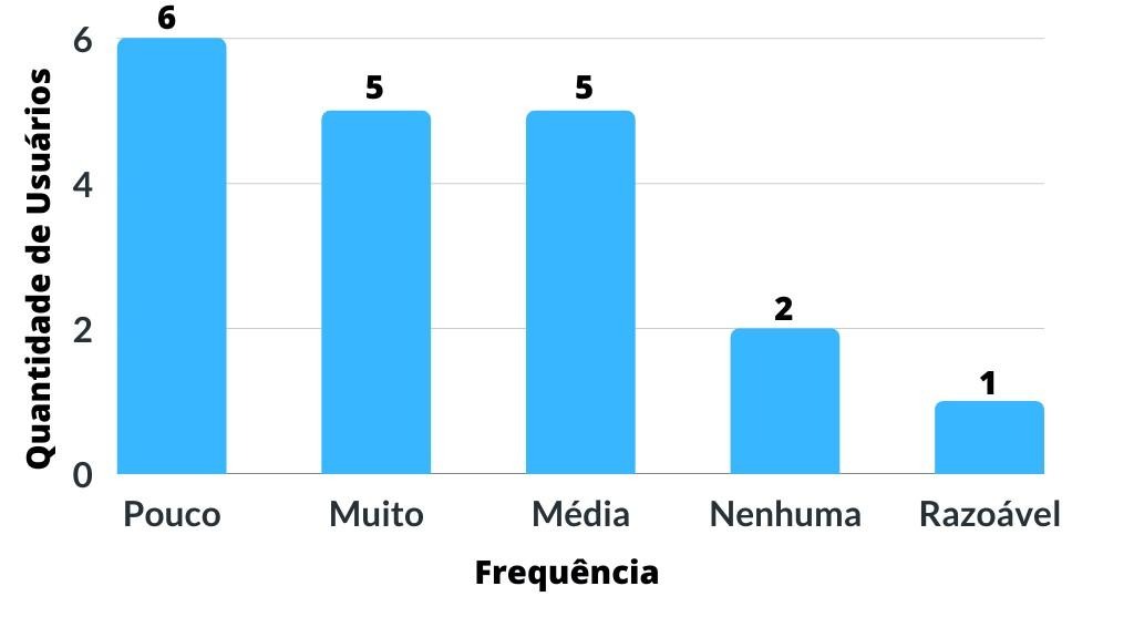 Abaixo (4), temos a frequência em que os participantes usam as plataformas curriculares. Analisando os dados, temos que 6 participantes usam com pouca frequência as redes sociais, 5 usam muito regularmente, 5 usam com média periodicidade, 2 não usam nenhuma vez e apenas 1 usa de forma razoável.