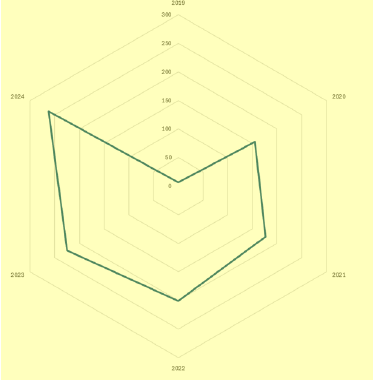 A Figura 2 mostra que o ano de 2024 obteve maior taxa de prevalência, com 262 casos para cada 100.000 pessoas, seguido do ano de 2023 com taxa de prevalência de 225.