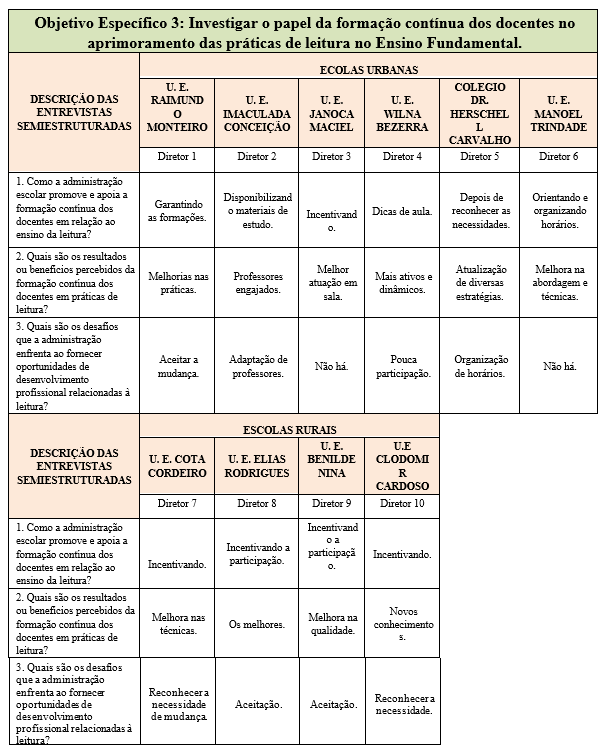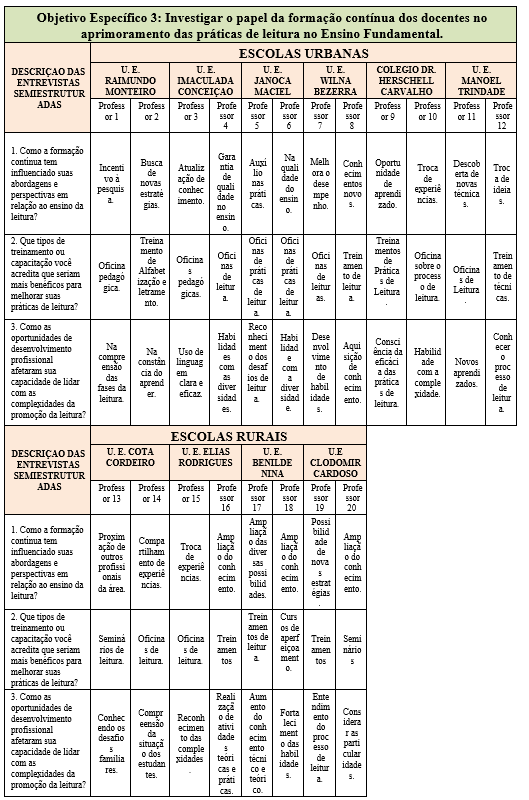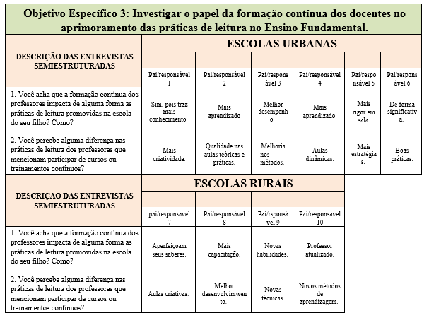 Objetivo Específico 3: Investigar o papel da formação contínua dos docentes no aprimoramento das práticas de leitura no Ensino Fundamental.