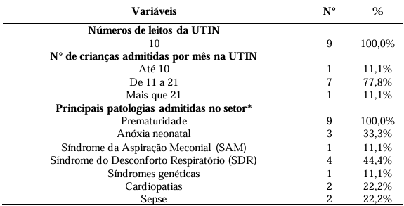 Tabela 2- Características da UTI Neonatal (n-=9)