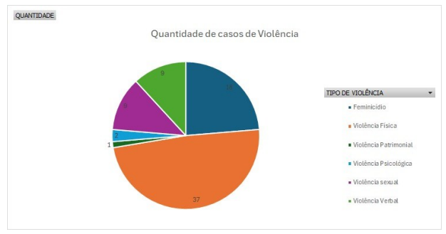 Após as buscas nas edições da revista, edições disponíveis no Centur (Fundaçao Cultural do Estado do Pará) foram encontradas um total de setenta e seis casos de violência doméstica no Para nos anos de 2023 e 2024. Em relação ao tipo de violência, destaca-se que a prevalência é da violência física, representando 48,68% dos casos encontrados. Em seguida o feminicídio com 18 casos encontrados e a violência verbal e sexual, ambas com 9 casos encontrados. Diferentemente dessa análise que apontou a maior prevalência de violência física e feminicídio, o estudo de Silva (2005) que utilizou entrevistas como coleta de dados mostrou que a violência física é mais predominante. O que evidencia que a região em que o estudo ocorre pode determinar a maior dominância de um tipo de violência.