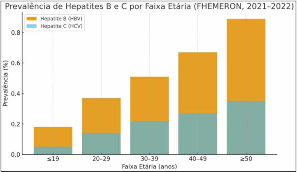Nesse contexto, o presente estudo fundamenta-se na análise dos dados epidemiológicos provenientes do banco de sangue da Fundação de Hematologia e Hemoterapia de Rondônia (FHEMERON), abrangendo o funcionamento da cadeia hemoterápica, a triagem sorológica obrigatória e a investigação das doenças transmissíveis pelo sangue, com ênfase nas hepatites B e C (Gerlich et al., 2010). Ao avaliar os dados referentes aos anos de 2021 e 2022, busca-se compreender a dinâmica da prevalência desses marcadores sorológicos entre os doadores atendidos pela instituição, contribuindo para o aprimoramento das estratégias de vigilância, prevenção e segurança transfusional no Estado.