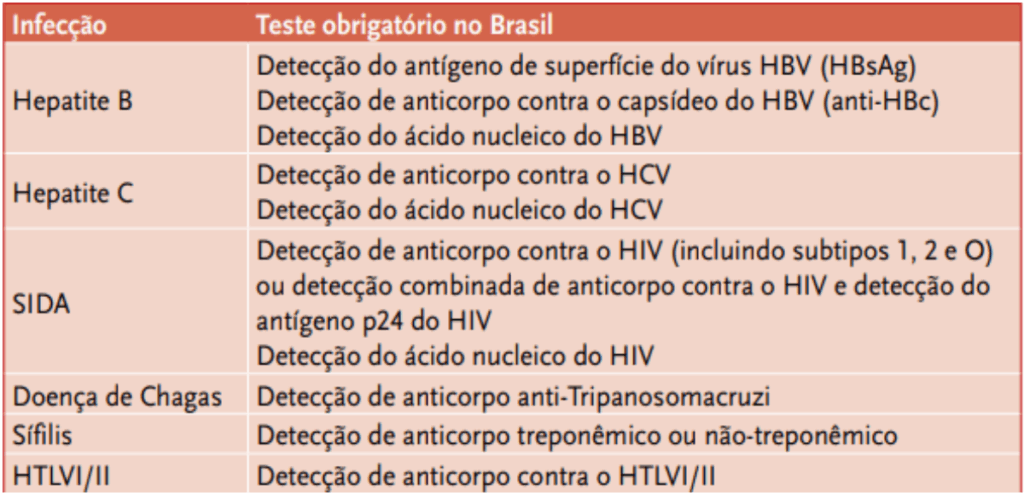 Tabela 3 – Teste para agentes infecciosos obrigatório no Brasil: