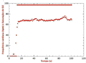 Figura 6. Medição calibrada de saturação de oxigênio e batimento cardíaco.