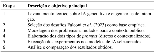 Palavras-chave: Inteligência Artificial; Engenharia de Prompt; Engenharia de Contexto; Administração Pública; Metodologia de Pesquisa.