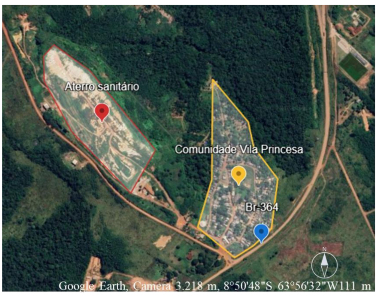 A pesquisa foi conduzida na Comunidade Vila Princesa, situada na zona leste de Porto Velho, capital do estado de Rondônia. A comunidade é conhecida por abrigar um lixão a céu aberto e possui aproximadamente 1.148 habitantes, a maioria dos quais está diretamente envolvida em atividades relacionadas ao lixão. A Vila Princesa não possui infraestrutura básica, como ruas asfaltadas, saneamento básico e acesso à água encanada (Figura 1).