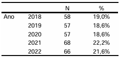 Tabela 1: Distribuição das CRVM no Norte do Brasil entre os anos de 2018 e 2022