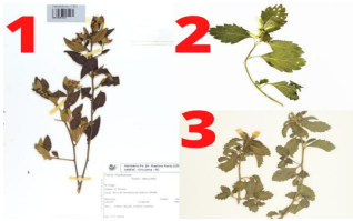 Figura 1. Espécies de Turnera descritas na literatura com propriedades medicinais. (1) T. diffusa1, Fonte: (Herbário virtual reflora); (2) T. subulata2, Fonte: (UFERJ, ACERVO HUNI JABOT); (3) T. ulmifolia1. Fonte: (Herbário virtual reflora).