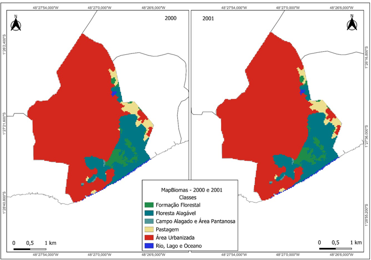 Figura 2. Análise multitemporal de uso e ocupação do solo na Bacia do Tucunduba de 2000 a 2001.