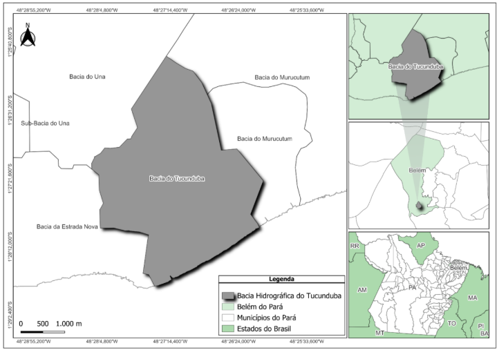 A pesquisa tem como foco principal a Bacia Hidrográfica do Tucunduba, situada no município de Belém, estado do Pará, na região Norte do Brasil. A Figura 1 apresenta a