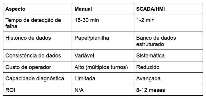 - Transição para manutenção preventiva: Sistemas SCADA facilitam mudança de paradigma de 15-20% preventiva inicialmente para 60-70% após implementação, gerando economia significativa.
