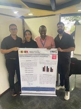 Na SEPEX-UNIG 2025, apresentamos o trabalho “Somos todos iguais? Educação antirracista, direitos humanos e acesso à universidade”, discutindo as barreiras que a população negra ainda enfrenta para ingressar e permanecer no ensino superior. A pesquisa reforça a importância de políticas e práticas antirracistas na universidade, comprometidas com a construção de uma sociedade mais justa, plural e verdadeiramente democrática, ver imagem 1: