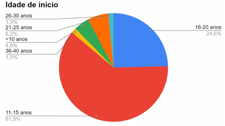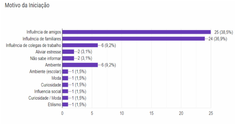 Uma grande proporção iniciou o tabagismo em idade precoce, sendo que 61,5% deu início entre os 11 e os 15 anos de idade, e os fatores mais relatados como motivo da iniciação, foram o de influência de amigos e familiares. Faixa etária onde se supõe haver uma das maiores taxas de neuroplasticidade cerebral, onde as interações organismo-ambiente gera uma criação de sinapses, circuitos e respostas neuronais, culminando em propriedades comportamentais e a individualidade de cada um.(4) Justificando uma possível propensão à dependência, e futuros efeitos deletérios dos anos de tabagismo.