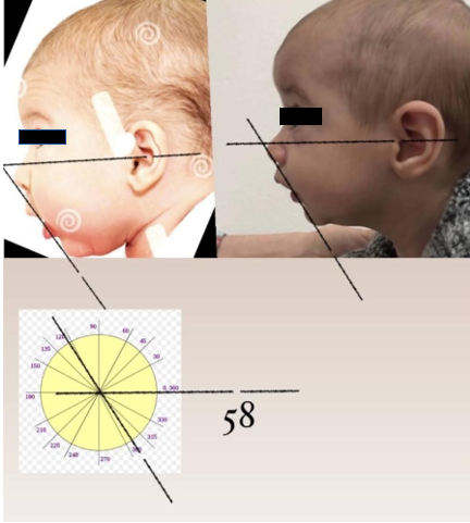 Figure 2: Measured angle (Z) from the tragus to the nasal apex region and nasomental line. Being the average in children of 58 to 62 degrees.