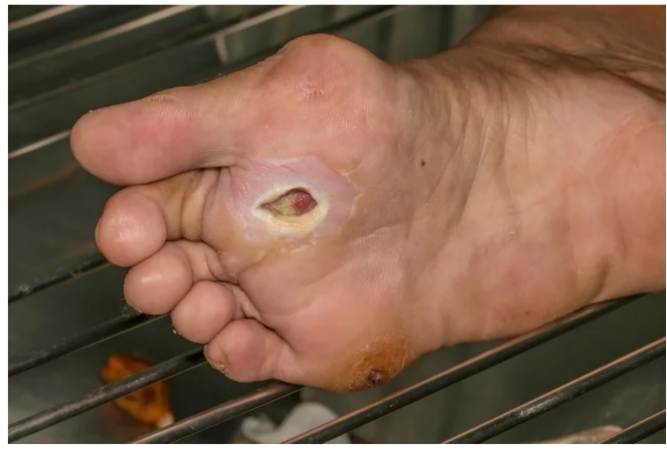 O pé diabético tem aumentado devido à prevalência mundial de DM e ao prolongamento da expectativa de vida dos pacientes com a doença. A prevalência global de úlceras de pé diabético foi de 6,3%, sendo maior entre os homens do que entre as mulheres, é maior em pacientes com DM2 do que nos com Diabetes Mellitus Tipo 1 (ZHANG, 2017) abaixo podemos ver a figura 1 representando a complicação do pé diabético.