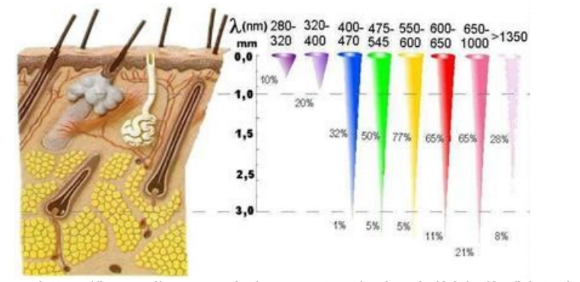 O efeito do laser na reparação tecidual vai acontecer de acordo com a absorção da radiação e a condução dessa energia no tecido tratado, na Figura 5 representa o tamanho da onda de laser e a quantidade de absorção e condução da energia no tecido.