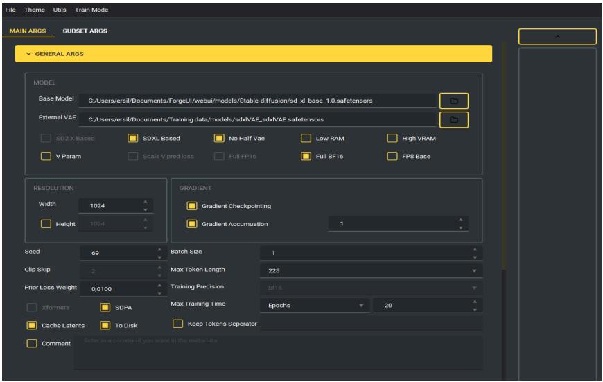 Figura 3 – SUBSET ARGS: Pasta da imagem (Input Image Dir), repeats e augmentations.