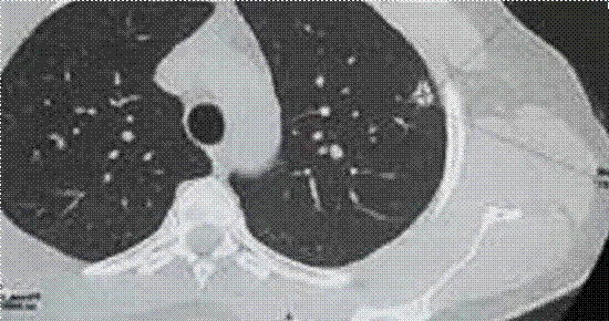 Nesse cenário, foi solicitada uma tomografia de tórax sem contraste para investigação de sequela de tuberculose, a qual demonstrou duas opacidades alongadas e algo espiculadas em segmento ápico-posterior do lobo superior esquerdo, podendo corresponder à sequela de processo inflamatório/infeccioso.