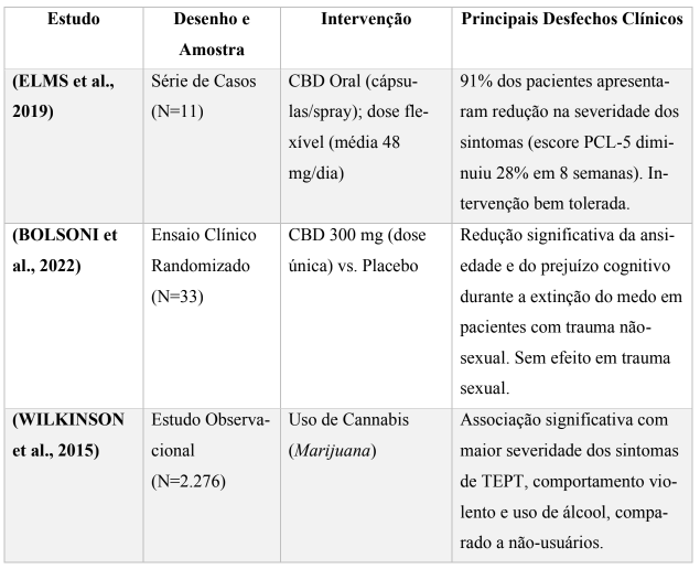 Quadro 1 – Estudos Clínicos Relevantes sobre CBD e Cannabis no TEPT