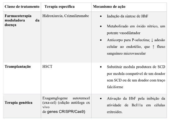 NEUMAYR, Lynne D.; HOPPE, Carolyn C.; BROWN, Clark. Sickle Cell Disease: Current Treatment and Emerging Therapies. The American Journal of Managed Care, v. 25, n. 18, s. 335-343, 2019. Disponível em:https://www.ajmc.com/view/sickle-cell-disease-currenttreatment-and-emergingtherapies. Acesso em: 10 de agosto 2023.
