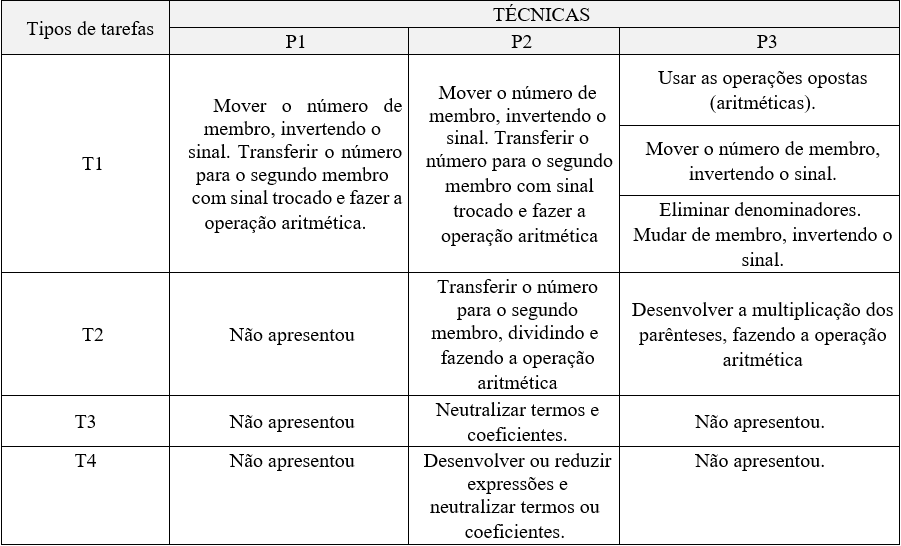 Ao examinar os livros, os autores adotaram diferentes sequências para abordar a elaboração e a sistematização de diversas técnicas. Portanto, esses livros não justificaram a existência das diferentes técnicas, não estabeleceram claramente as fronteiras ou o escopo de cada técnica e não explicaram as distinções entre os procedimentos aritméticos e os procedimentos algébricos, conforme destacado por Chevallard (1984).