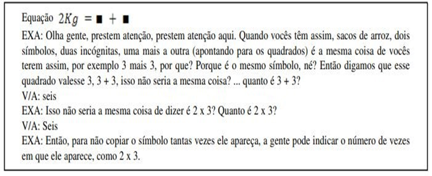 Em seguida, durante a aula, os autores indicam que foi compartilhado com os estudantes informações sobre a evolução das equações, abordando desde os primeiros registros conhecidos até os matemáticos que contribuíram no desenvolvimento desse conceito. Para auxiliar nesse processo, os autores supracitados apontaram que foi usado um vídeo intitulado “História das Equações de 1º grau” (Sales, 2020)³ projetado em sala de aula.