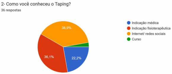 (22,8%) do público alega ter conhecido o taping através de médicos e o restante dos entrevistados (2,8%) tiveram acesso das mais diversas formas que vão desde a faculdade (centros de ensino) até verem seus conhecidos usando e se interessarem também pela técnica.