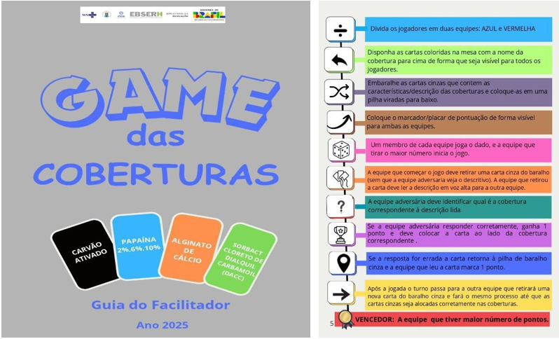 Descrever-se-á acerca do desenvolvimento (planejamento, elaboração/construção e validação) de uma tecnologia educativa do tipo serious game voltada a profissionais de enfermagem sobre produtos para tratamento de LC em cenário hospitalar denominado Game das Coberturas. O jogo educativo teve como objetivo capacitar os profissionais de enfermagem sobre o uso adequado das coberturas disponíveis na instituição para o tratamento de LC.