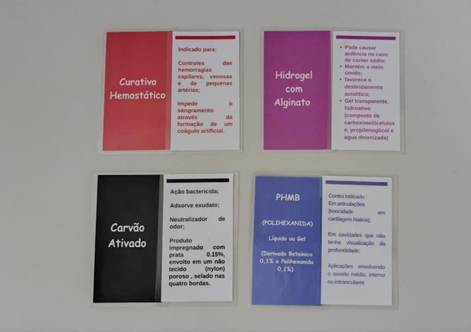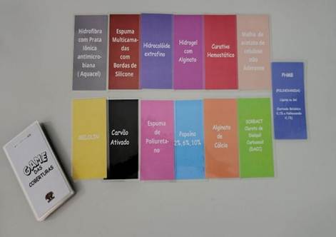 Com base nesse levantamento e na vivência profissional da autora principal deste estudo, definiu-se o conteúdo teórico a ser abordado. Foram observados os seguintes critérios na elaboração: planejar um jogo com informações claras, objetivas e aplicáveis na prática clínica e na tomada de decisão do enfermeiro ao escolher uma cobertura para tratamento de LC, sendo de fácil compreensão e que ao mesmo tempo instigasse e desafiasse os participantes no jogo. Com possibilidade de tornar-se um desafio sem constranger nenhum participante mediante resposta incorreta.